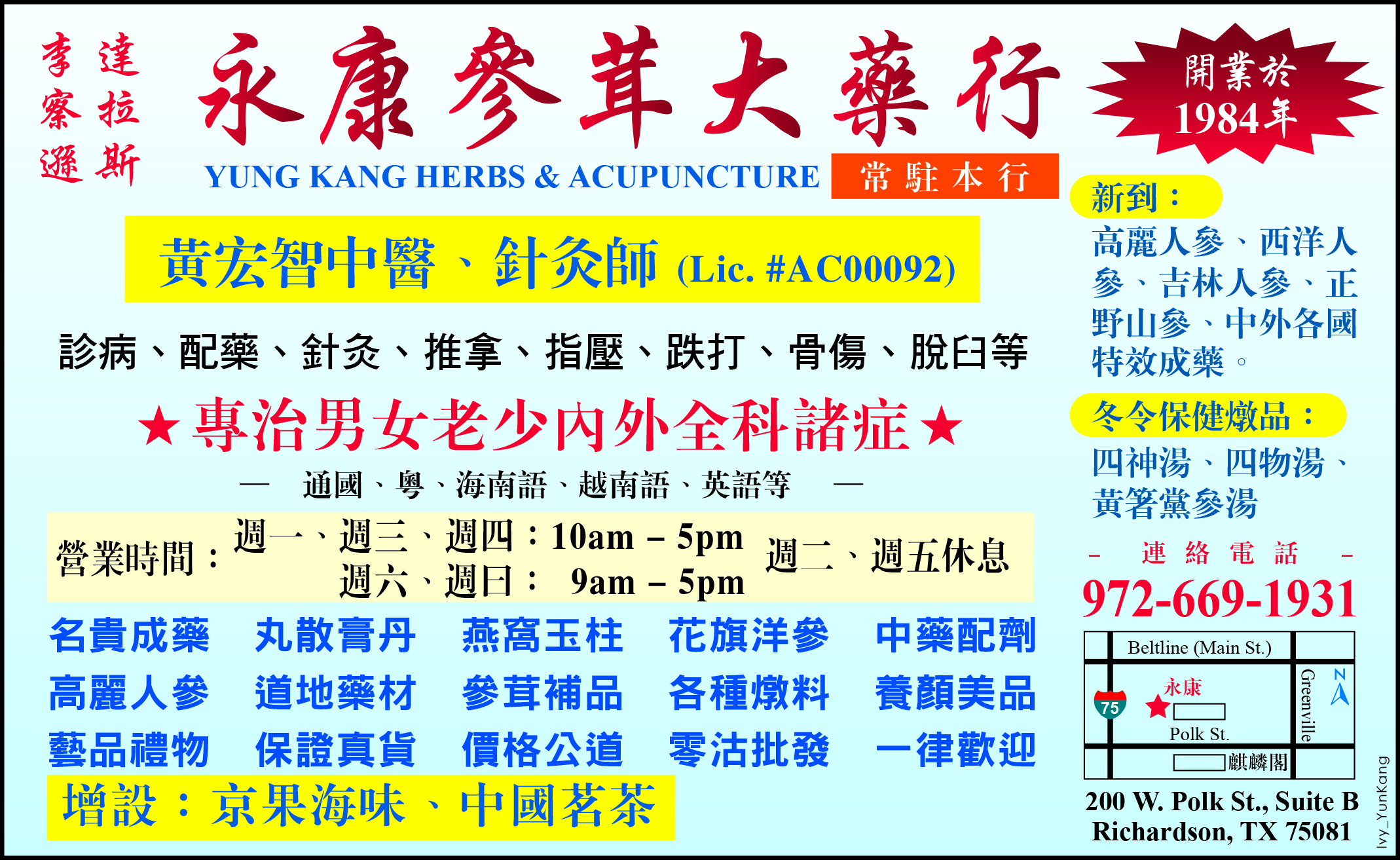 永康參茸大藥行 - 黃宏智中醫師