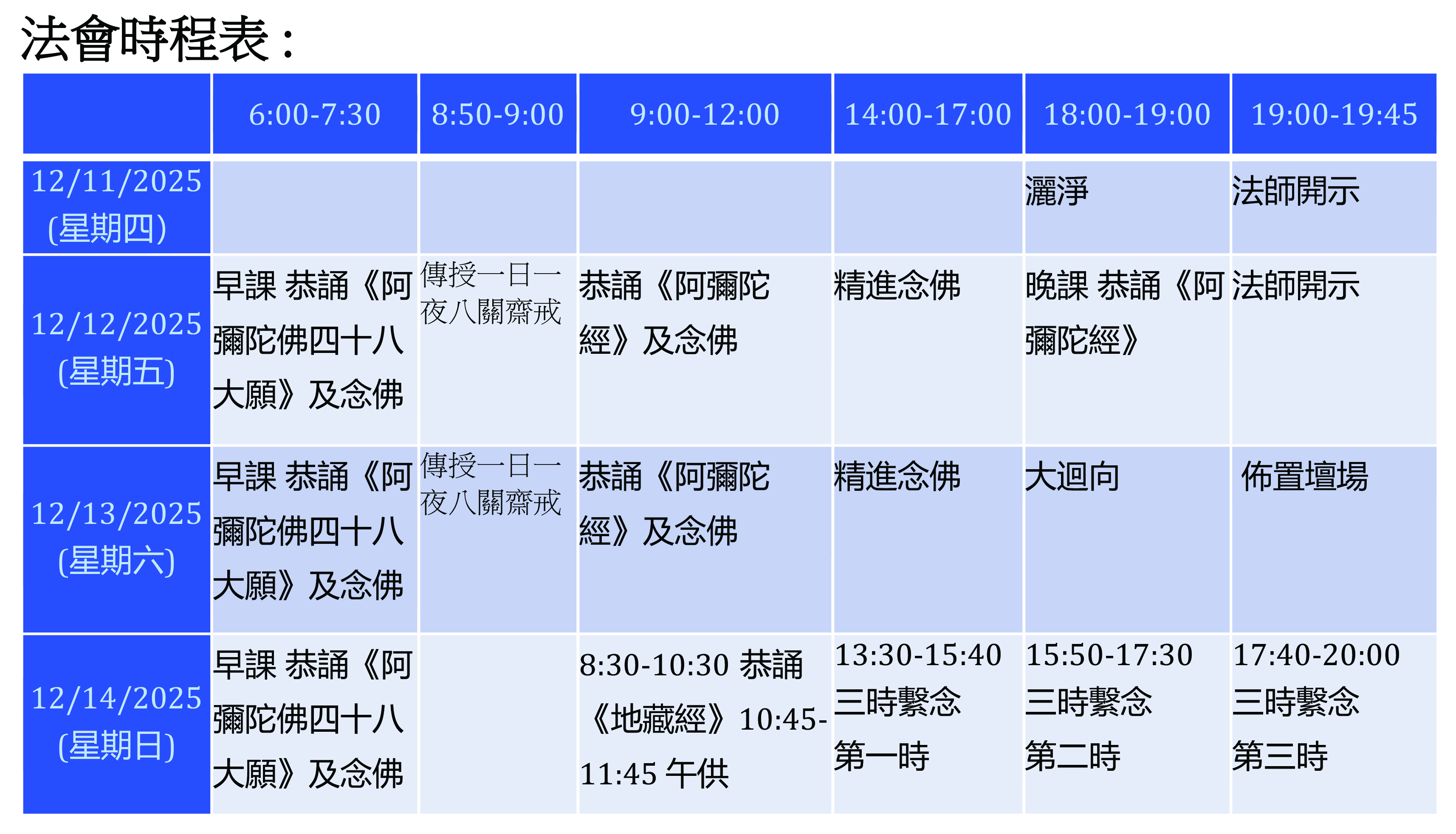 法會日期 : 12/11/2025(星期四) – 12/14/2025(星期日)
